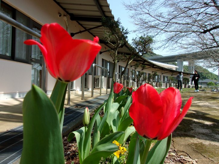 チューリップやネモフィラが皆さんをお迎えしましたよ。