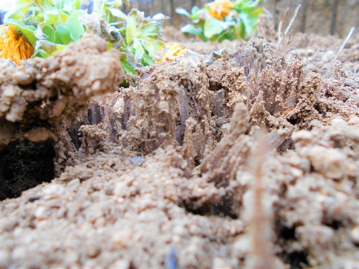内牧の実際の気温はー2℃でした。裏の花壇には、立派な霜柱がありました。しかも昼過ぎまで凍っていました。